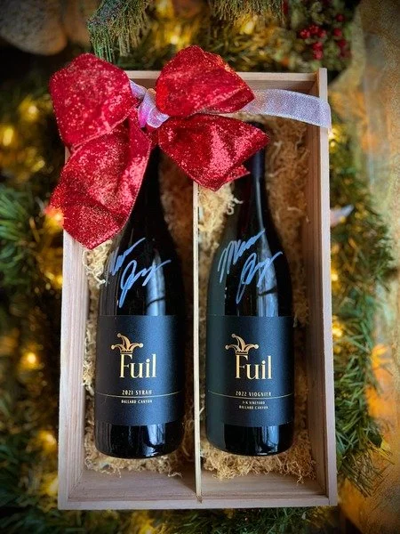 Our high end Fuil Black Label wines, signed by winemaker Matthew Espiro Jaeger, pre-packaged in a traditional wooden box with our label carved into the cover.